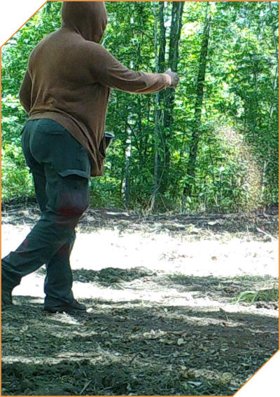 with the hunter's back to the neighboring property.